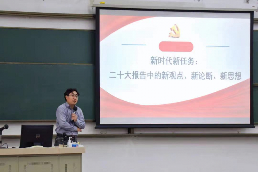 3月13日下午,牛军凯院长在珠海校区教学楼C201课室为2021、2020、2019级本科生授课,授课主题为“新时代新任务:二十大报告中的新观点、新论断、新思想”。