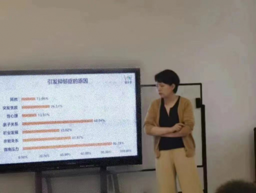 老师介绍了目前中国心理教育的发展情况、大学生的心理健康状况、几种常见心理问题等。同时通过举例子向同学讲解如何通过“情绪日志”排解自己的情绪和使用“苏格拉底式问话法”对身边有情绪困扰的同学提供陪伴和心理支持,丰富了学院朋辈与互助小组同学们的知识储备。