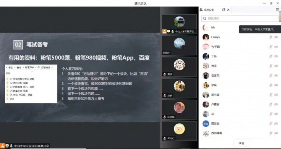 在交流环节,2020级和2021级的同学就 “广东省选调生的岗位选择”、“是否应该尽可能的尝试多次考试”、“如何选择合适的考公资料”、“如何应对事业编考试的面试”等问题与大家充分交流。