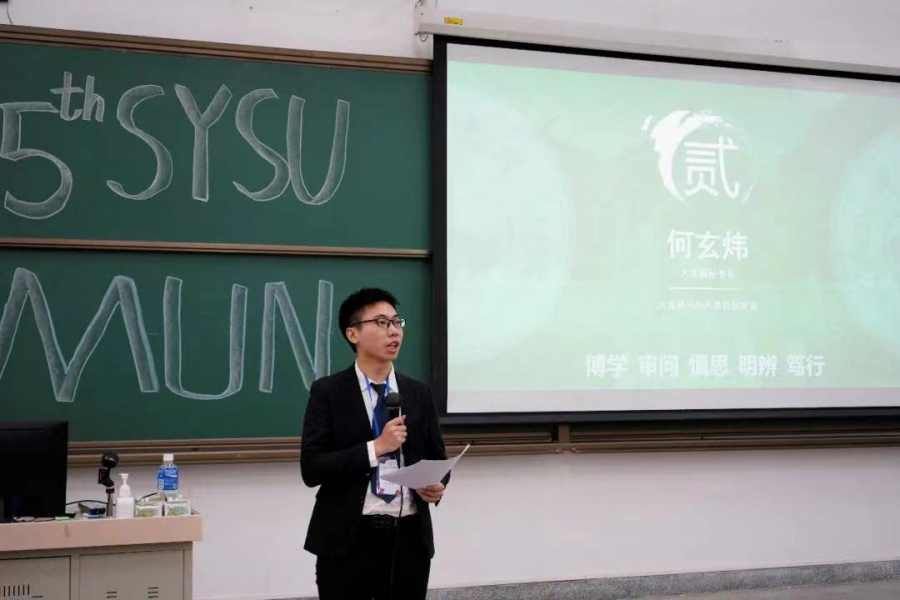 开幕式的最后,本次中大模联的秘书长刘添辅代表大会组委向代表们致欢迎辞,并介绍各个会场的主席团成员。