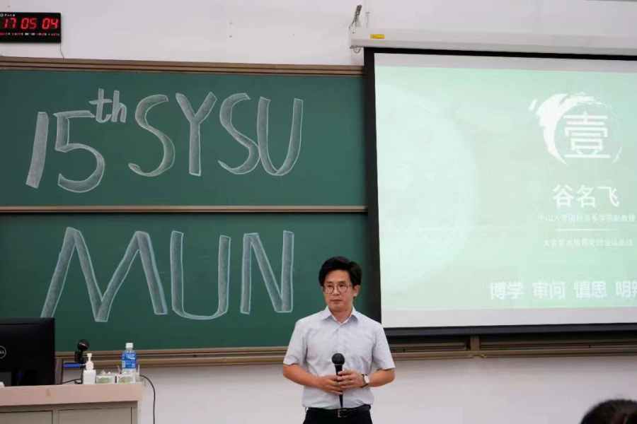 谷名飞副教授在致辞中对本次大会的与会代表提出三点期望:一是学会从国家角度分析国际问题,坚持以本国立场、本国利益为出发点进行磋商;二是要以高标准要求自己,个人的言行举止应具备一个国家代表应有的专业水平;三是要注意倾听他人的发言,只有了解对方立场、对方观点和对方意图,才能实现更好的对话与决策。