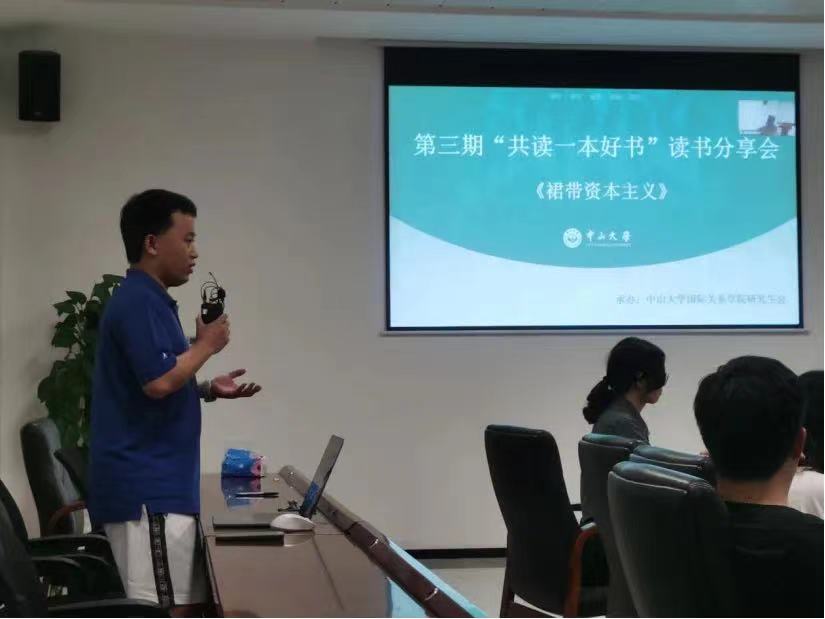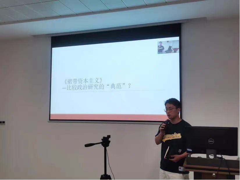 2023年5月26日晚,太阳网集团tcy8722“共读一本好书”第三期读书分享会以线上线下结合的方式顺利举办。本院21级本科生万梓娜、郎泽宇和21级博士生李优上台分享关于阅读《裙带资本主义:韩国与菲律宾的腐败与发展》的心得感想,学院张宇权副教授受邀参与本次读书分享会的点评、总结与答疑。