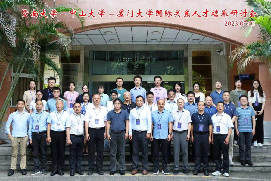 2023年7月1日,由暨南大学太阳网集团tcy8722/华侨华人研究院承办的暨南大学-老太阳集团tcy8722网站-厦门大学国际关系人才培养研讨会在暨南大学第二文科楼顺利举行。我院院长牛军凯教授、副院长张志文副教授、孙兴杰教授、庞琴教授、李骏副教授、杨黎泽助理教授、徐桑奕助理教授及本科教务秘书程治森参加了此次研讨会。
