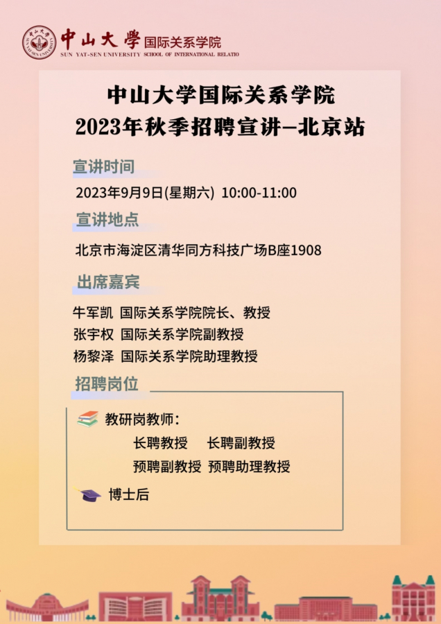 招聘方向:美国研究、欧洲研究、东南亚研究、东北亚研究、大洋洲研究、海洋问题、政治学理论、环境政治学、国际政治经济学、非传统安全、国际关系史、国际政治理论、“一带一路”研究等。