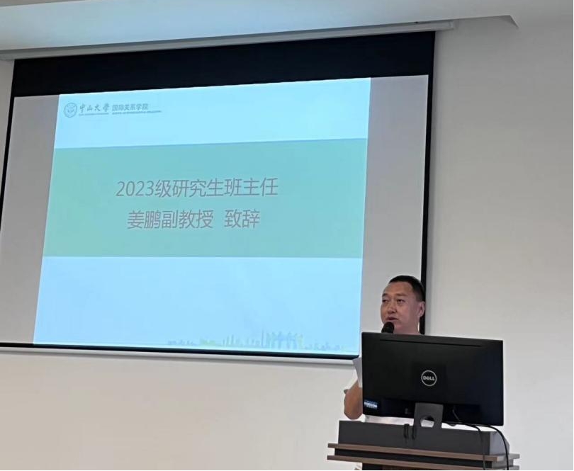 随后,2023级研究生班级班主任姜鹏副教授发言。他表达了对研究生新生的期待,并指出他们将面临的挑战和机遇。他鼓励研究生新生应紧跟时代步伐,深入了解国际形势,通过广泛阅读及深入研究掌握扎实的学术知识;同时,树立正确的人生观和价值观,强调实践能力的培养,为中国的崛起和民族的复兴贡献力量。