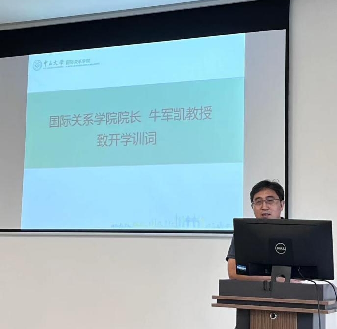 随后,学院院长牛军凯教授致开学训词。牛院长首先对研究生新生们来到老太阳集团tcy8722网站表示祝贺和欢迎,其次提出三点期待,第一,研究生新生应有远大志向,立志成才,有学术定力,专心致志地做一名专业学者;第二,读一些经典的“无用之书”,鼓励新生保持阅读习惯,“横扫图书资料室”,利用好这几年的时间阅多读经典著作;第三,应坚守理想信念,不惧挫折,牢记家国情怀。