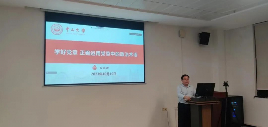 首先,丘国新同志以“学好党章 正确运用党章中的政治术语”为题,分四个部分展开讲座。丘国新同志先是强调了学好党章的重要性,而后回顾了党的十二大以来几个重要政治术语的演进过程。接下来,围绕如何正确运用党章中的政治术语,丘国新同志结合《中国共产党章程(修正案)》,基于发展党员材料常见问题的生动实例,深入浅出地讲解了如何规范写好入党申请书、规范填写入党志愿、规范撰写入党自传。最后,丘国新同志指出,学习贯彻党章是加强党的建设的一项基础性经常性工作,也是全党同志的应尽义务和庄严责任,勉励大家原原本本学、反反复复学,联系实际学、深入思考学。