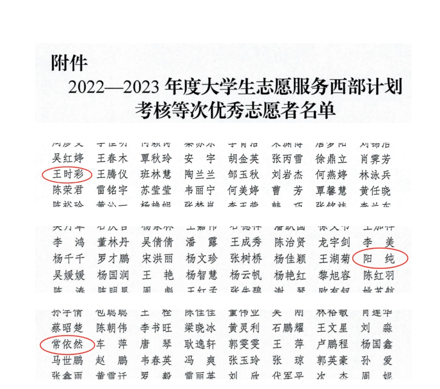 《全国2022—2023年度大学生志愿服务西部计划优秀志愿者名单》(节选)