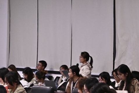 讲座引起了热烈反响。在交流环节中,同学们围绕“全球右翼势力的崛起原因”、“如何通过公共外交讲好中国故事”、“大国兴衰加快”等议题积极提问。刘老师就提问进行了详细解惑,给同学们带来了更多启发性的思考。