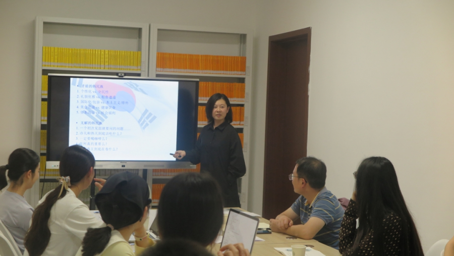 在交流环节,同学们积极发言,就韩国民众对自身文化认可度、如何理解韩国对中国外交政策的矛盾性以及韩国政府文件和相关资料的检索等问题与刘老师展开了热烈的讨论。