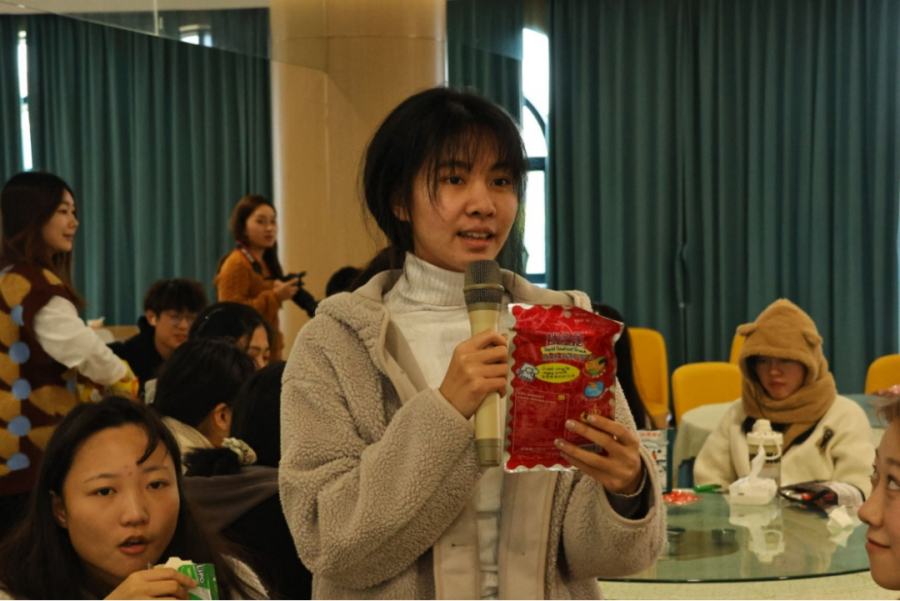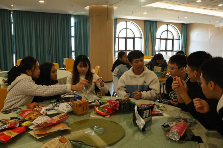 “民以食为天”,世界各地不同的气候及饮食习惯造就了多样的饮食文化。在此环节中,大家积极交流自己的家乡美食。从无辣不欢的四川到遍地是宝的东三省,从香辛浓郁的马来风味,到清爽调和的越南饮食。从天南到地北,师生们领略了各国的饮食风情。一些同学还将家乡的特色美食带来了现场与大家分享。