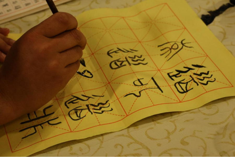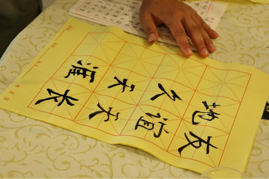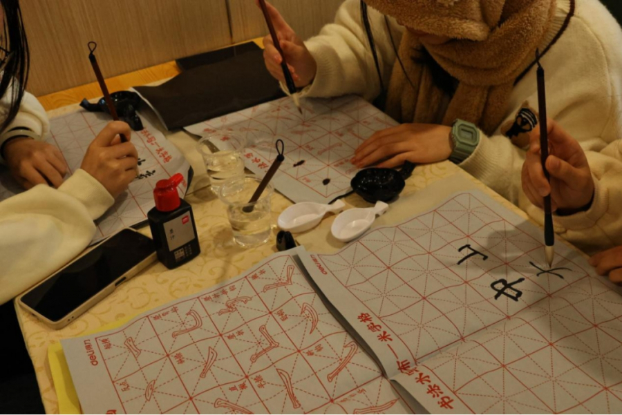 文字作为传承文化和历史的咽喉,在漫长的四季流转中诉说着动听的故事。如果对一个民族来说,文字是它的灵魂,那么在中国,书法既是中华文化的灵魂演绎与表达。在此环节,主办方准备了笔墨纸砚,并邀请了书法协会的同学们指导大家如何运用毛笔书写汉字。