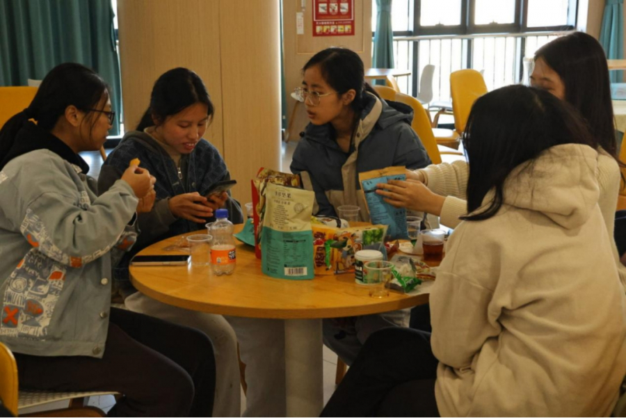 同学们分享美食,相互交流