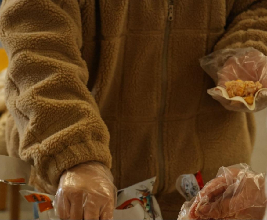 工作人员分装饺子