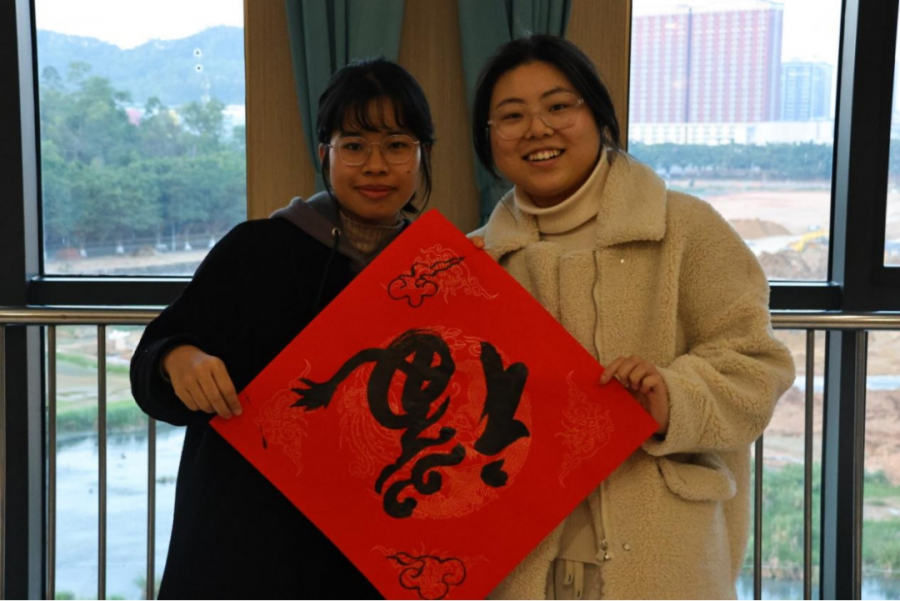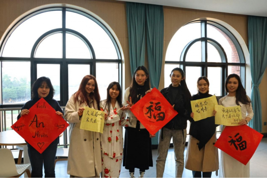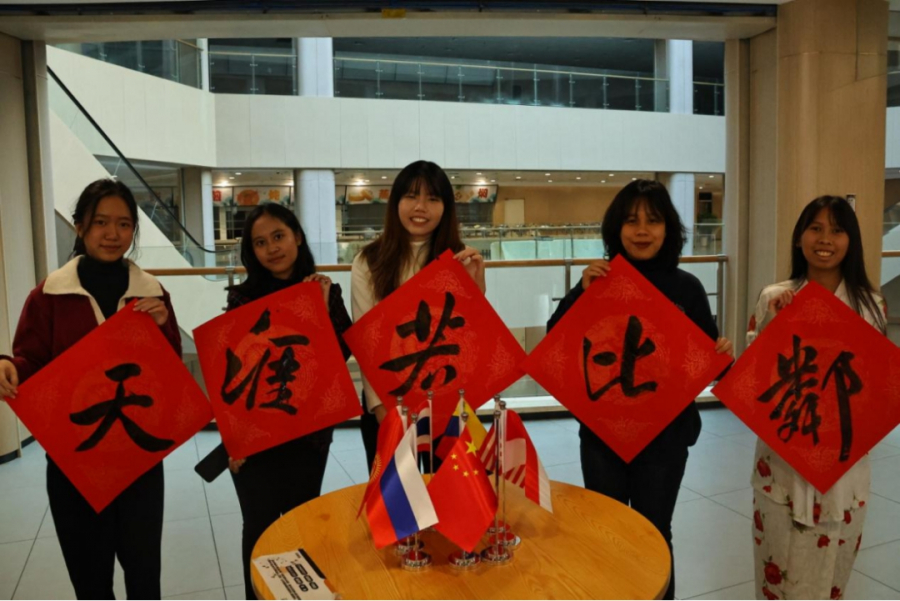 留学生同学书写“天涯若比邻”