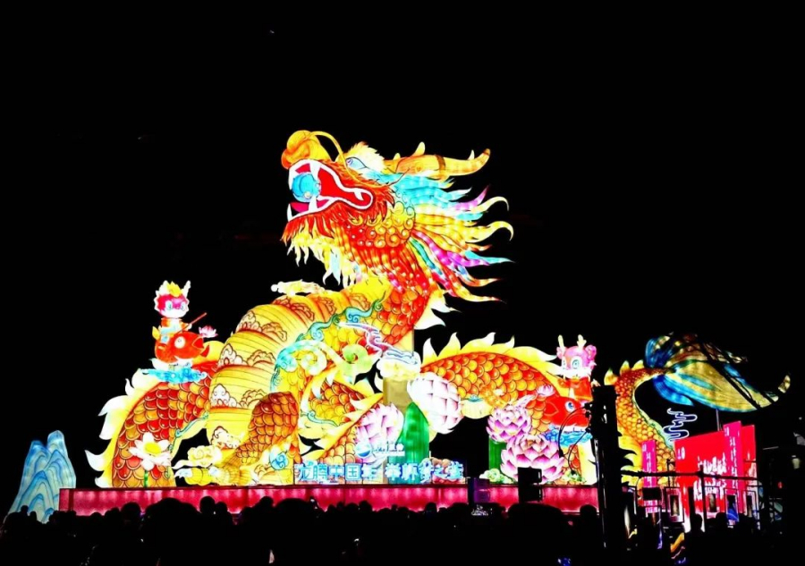 “西安古城墙是是中国现存规模最大、保存最完整的古代城垣,而春节期间的城墙新春灯会业已举办至第37届。华灯初上,龙元素为主题的各式花灯彰显西安浓厚的历史文化底蕴,为中国年增添长安色彩。”