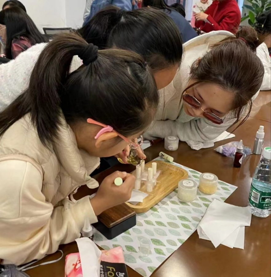 此次教职工亲子活动以“撷香印象”作为活动主题,将芳香知识学习和手工制作相结合,兼具知识性与趣味性。活动伊始,芳疗师介绍了芳香疗法的历史和精油在中国的推广,生动有趣的互动问答环节点燃了现场参与人的热情,在专业的讲解中,大家了解了这一古老而神奇的疗愈技术在生活中的应用。