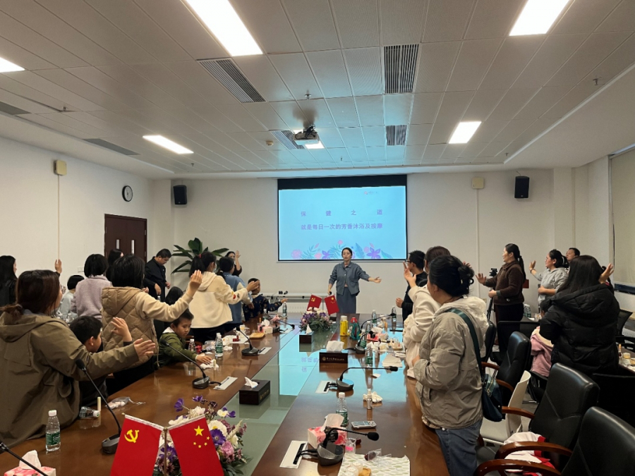 活动最后,芳疗师带领大家做了精油舒筋减压操,使参与者得到了身心的放松和愉悦。
