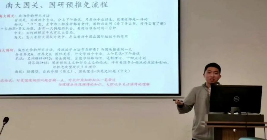 刘添辅同学重点介绍了如何进行保研赛道的选择,并强调可以综合个人规划来选择国际关系相关专业。此外,他还分享了北京大学、中国人民大学与复旦大学的复试经验,并从专业特色、就业资源与复试情况等方面介绍了南京大学中美文化研究中心。