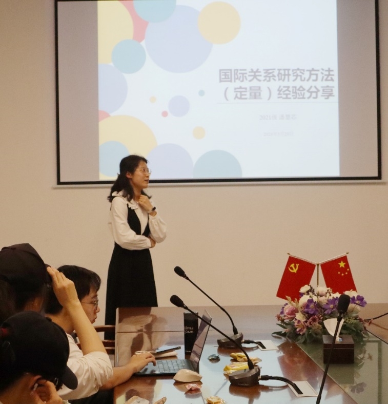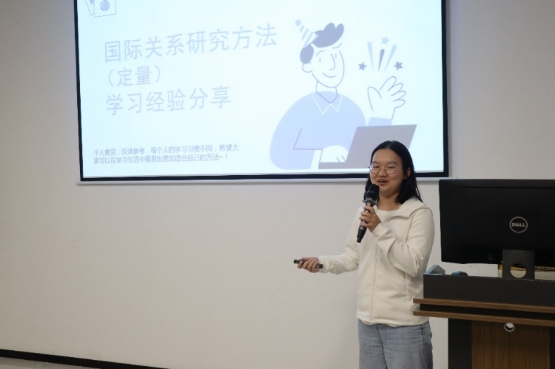潘慧芯同学分享了关于国际关系研究方法(定量)的学习经验,其侧重于课前、课堂与课后的学习,强调课前一定要认真预习相关材料;课堂上跟随老师思路,认真理解每个知识点;课后自主进行巩固与提高,及时发现并解决问题。