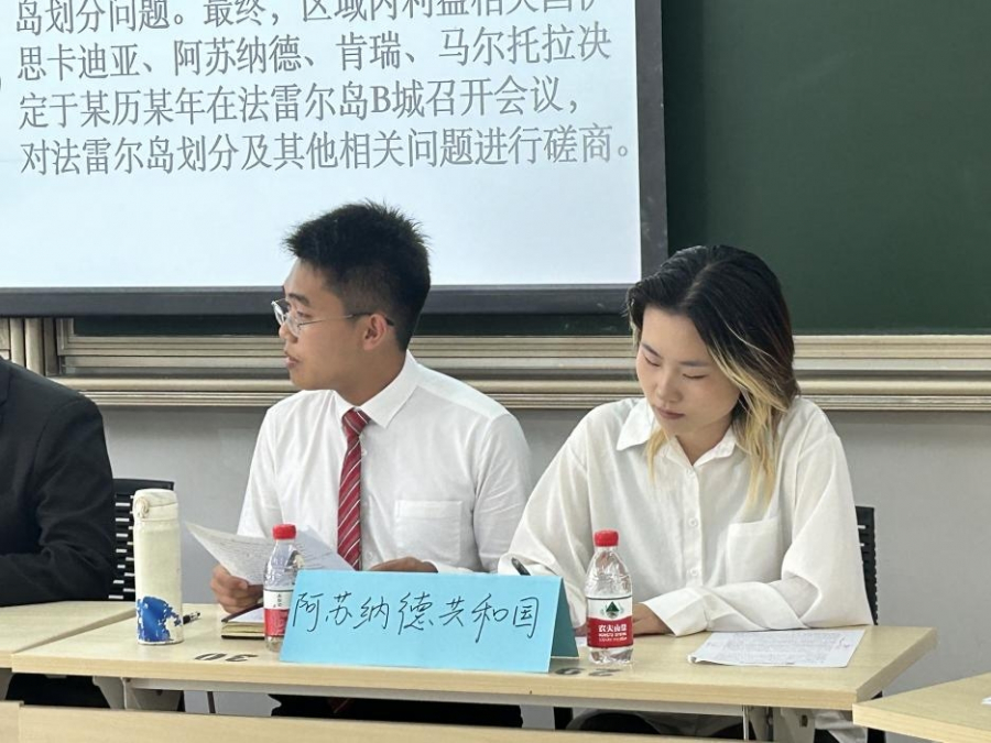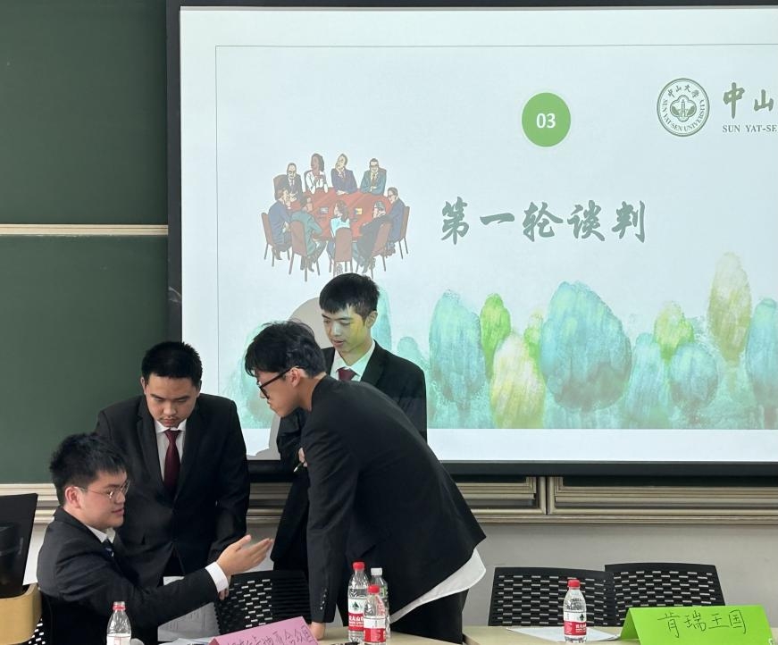 此次比赛共吸引了36组,72名选手参赛。经过初赛的激烈比拼,共有8组,16名选手进入决赛。比赛正式开始后,参赛选手在主持人的引导下依次做自我介绍与立场陈述,随后便进入紧张激烈的谈判阶段。谈判过程中,“各国代表”们为代表国家争取最大利益。赛场上,选手们唇枪舌剑;谈判中,言语里处处机锋,引得评委老师与观众朋友连连称赞。谈判结束后,“各国代表”进行新闻发布,同时,主持人对选手们的谈判成果进行裁定。
