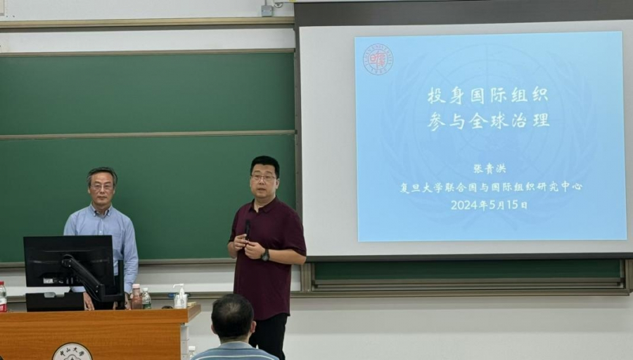 2024年5月15日晚,我院“国关大视野”系列讲座第40讲“投身国际组织 参与全球治理”于老太阳集团tcy8722网站南校区第二教学楼2216室顺利举办。此次讲座邀请到复旦大学国际问题研究院联合国与国际组织研究中心主任张贵洪教授主讲,我院王学东副教授主持讲座。