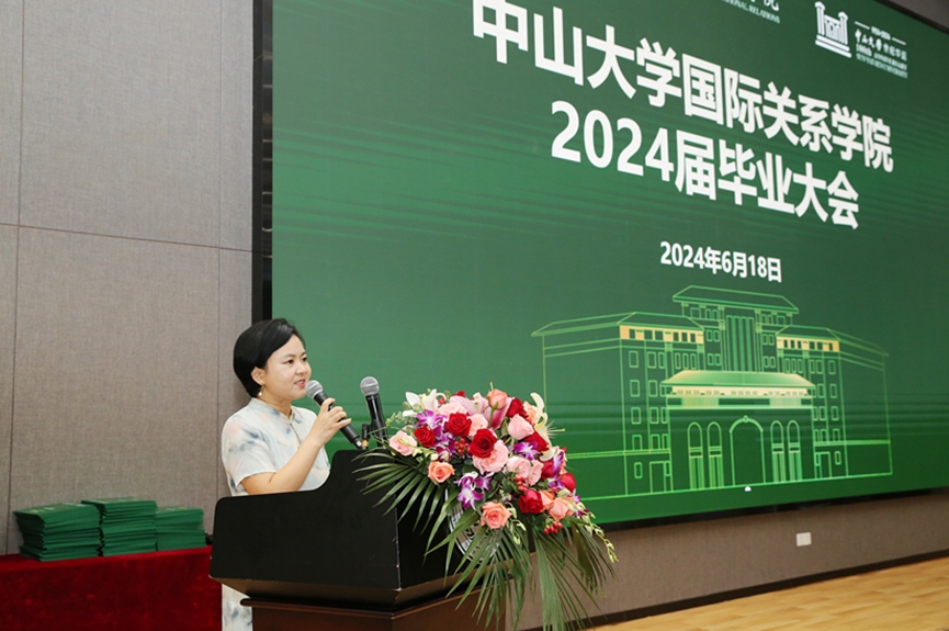谷名飞副教授首先回顾了与本届毕业生特别的缘分,回忆了与同学们一同成长的日子。他指出,专业特性促使国关人在复杂中寻找秩序、在矛盾中寻找和谐、在不确定中寻找确定。为此,他对毕业生们提出了三点期待:一是有全局感,思考问题从最根本的底层逻辑出发,在热烈的同时保持理性判断,成为热情而冷静、温柔而坚韧的人;二是对未来有长远的规划,并一以贯之、付诸实践,持之以恒是通往成功的必由之路;三是胸怀天下,充分意识到个人成功是与国家命运紧密相连的,并积极投身于推动国家发展的大势。