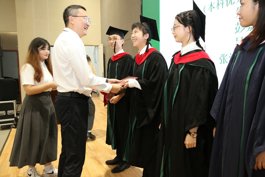 牛军凯院长为毕业生颁授毕业纪念册,并与毕业生合影留念。
