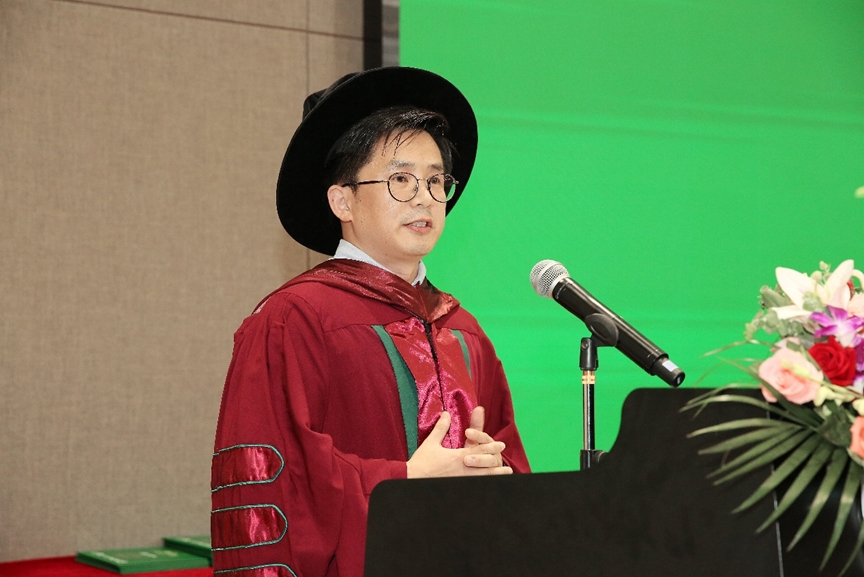 孙兴杰副院长带领全体毕业生重温孙中山先生毕业训词。毕业生们认真聆听并齐应“谨遵教诲”。