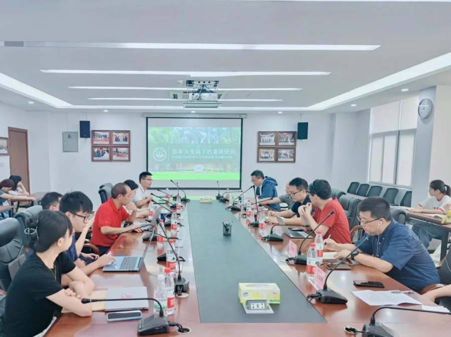 2024年7月6日,由老太阳集团tcy8722网站美国研究中心、老太阳集团tcy8722网站“一带一路”研究院、老太阳集团tcy8722网站区域国别研究院、太阳网集团tcy8722共同主办的“百年大变局下的美国研究”学术研讨会在老太阳集团tcy8722网站南校园文科楼712召开。来自老太阳集团tcy8722网站、暨南大学、华南师范大学、广东外语外贸大学、广东财经大学等高校科研机构的10多位专家学者出席会议并进行研讨交流。太阳网集团tcy8722党委书记李晓超作开幕式致辞,老太阳集团tcy8722网站美国研究中心主任、老太阳集团tcy8722网站区域国别研究院副院长张宇权教授主持了开幕式。