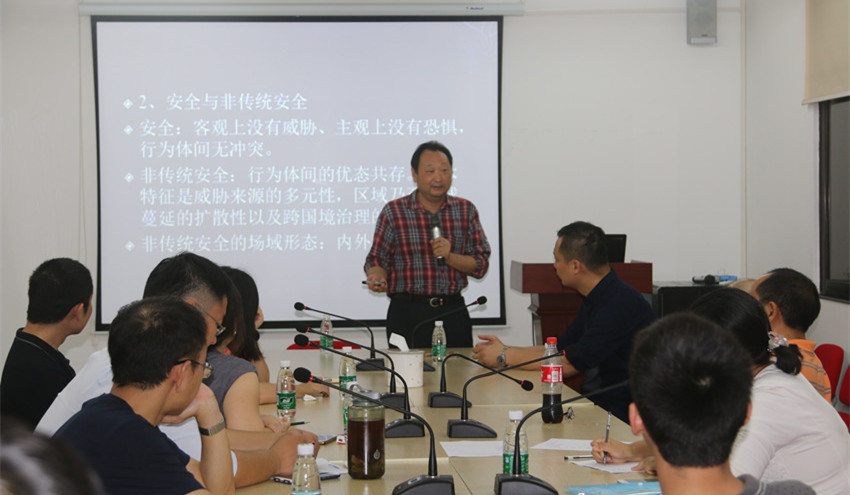 报告中,他从国际政治专业非传统安全研究领域的角度,对十九大报告相关部分进行了深刻解读。他表示,非传统安全是中共中央从第十四次全国代表大会以来就多次强调的安全领域,十九大报告中进一步提出“恐怖主义、网络安全、重大传染性疾病、气候变化等非传统安全威胁持续蔓延,人类面临许多共同挑战”,这表明中央对非传统安全问题比以前更加重视。