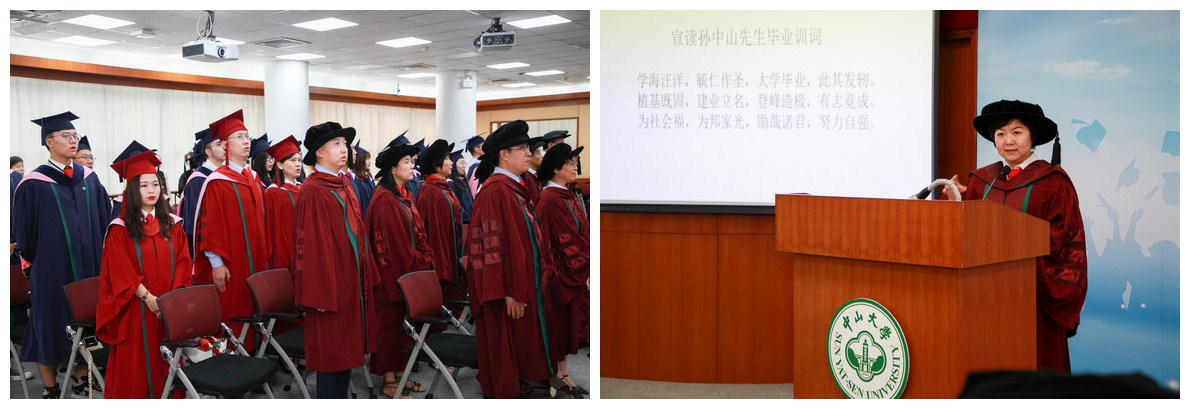 “白云山高,珠江水长……振兴中华,永志毋忘。”伴随着悠扬的旋律,动听的歌声,2019届研究生毕业典礼终告一段落。大学毕业,此其发轫。从今天起,2019届研究生毕业生即将告别大学校园,迈向各行各业,开启新的人生篇章。学院衷心祝愿各位毕业生,牢记中山先生嘱托,学无止境,胸怀大志,成为具有“德才兼备、领袖气质、家国情怀”的新时代毕业生。同时,希望各位毕业生在展翅高飞,鹏程万里之余,常思母校,常忆母院,饮水思源,为学院长远发展做出贡献。
