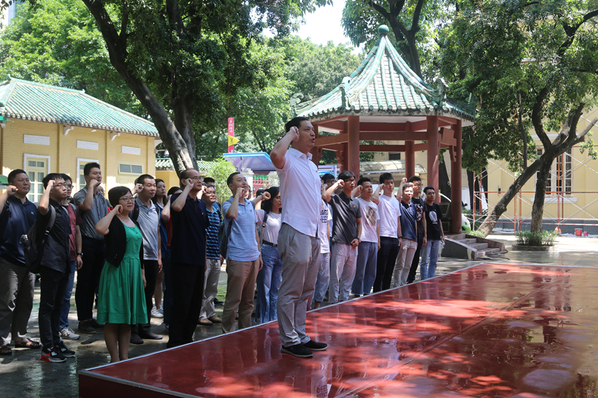 随后,学院党总支在广州起义纪念馆内的党旗下,为新近入党的预备党员举行了庄严的入党宣誓仪式,党总支陈峻副书记领誓,其他党员同志们一起重温了入党誓词。在革命先辈浴血奋战的历史旧址举行庄严的宣誓仪式,促使同志们进一步检视自身的理想信念,经受思想洗礼,不忘初心,牢记使命,不断汲取前进动力。