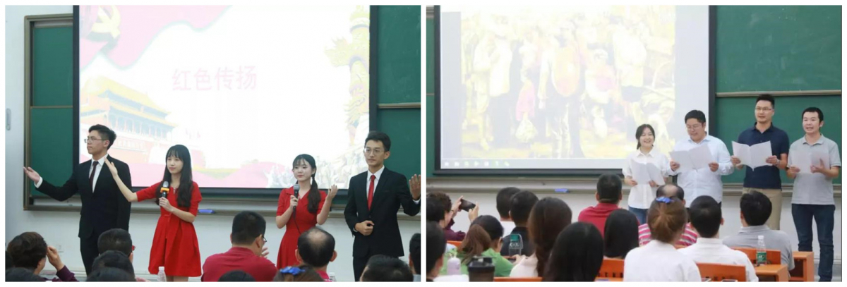 活动伊始,四位党支部书记依次介绍了本支部主题教育工作进展及此次联合主题党日活动前期筹备情况。随后,师生们先后进行了“我与我的祖国”主题征文优秀作品展示、红色舞台剧表演、红色诗文朗诵及“与祖国共成长”教师故事分享等活动。