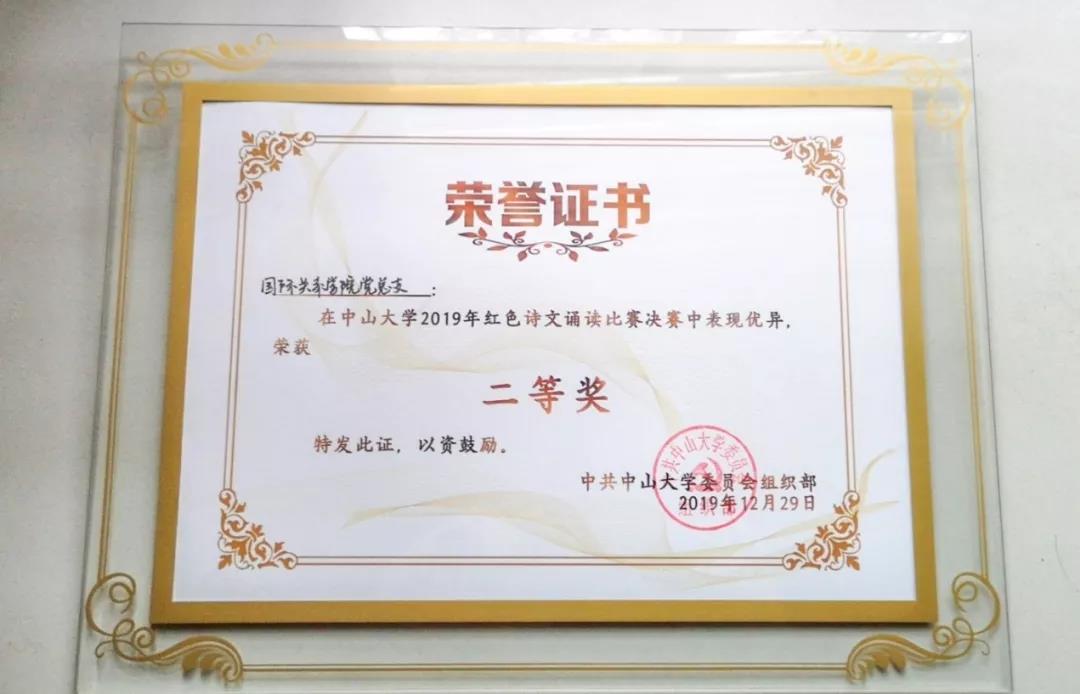 12月29日下午,老太阳集团tcy8722网站红色诗文诵读比赛决赛在老太阳集团tcy8722网站广州校区南校园善思堂M203国际会议厅成功举办。我院党总支代表队继在珠海校区初赛中荣获一等奖后,在决赛中再接再厉,凭借对我院钟可立同学原创诗歌作品《五千年的叙事曲》的精彩演绎荣获二等奖。