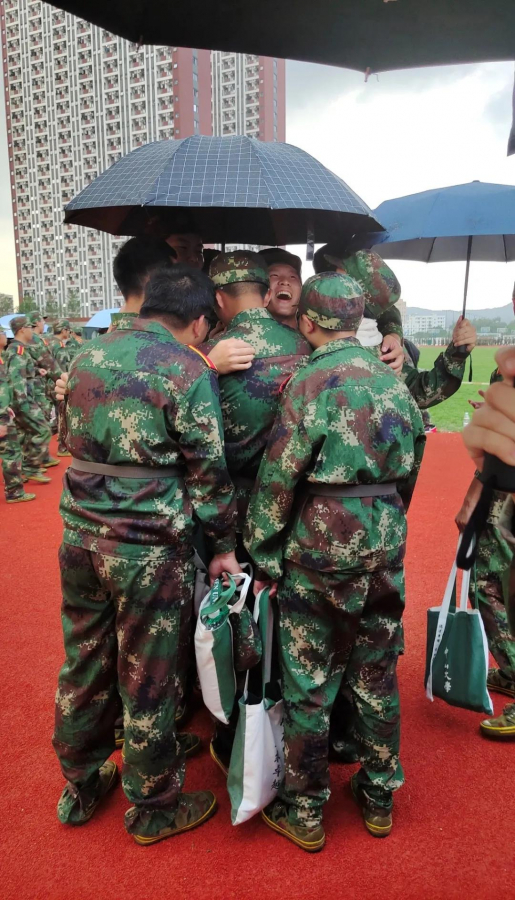 A:在我的记忆中,军训的关键词是“多雨”和“包容”。