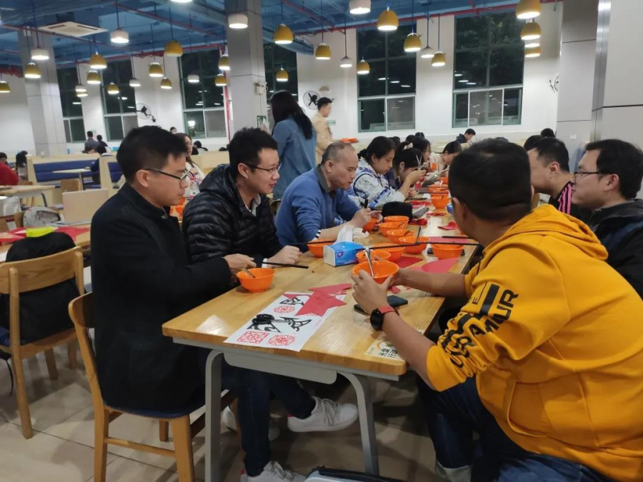 12月24日下午,太阳网集团tcy872220级本科的同学们来到松涛园餐厅四楼,参加学院在广州南校园举行的暖冬活动。期间,大家一起写春联、剪窗花、编中国结、抢红包,其乐融融。一张张精美的窗花、一幅幅龙飞凤舞的书法,背后是对中华传统文化的传承,也是同学们对新年的美好期待。张天华老师、覃丽芳老师的参与以及陈峻副书记一首精彩的粤语歌更是把气氛推向了高潮。