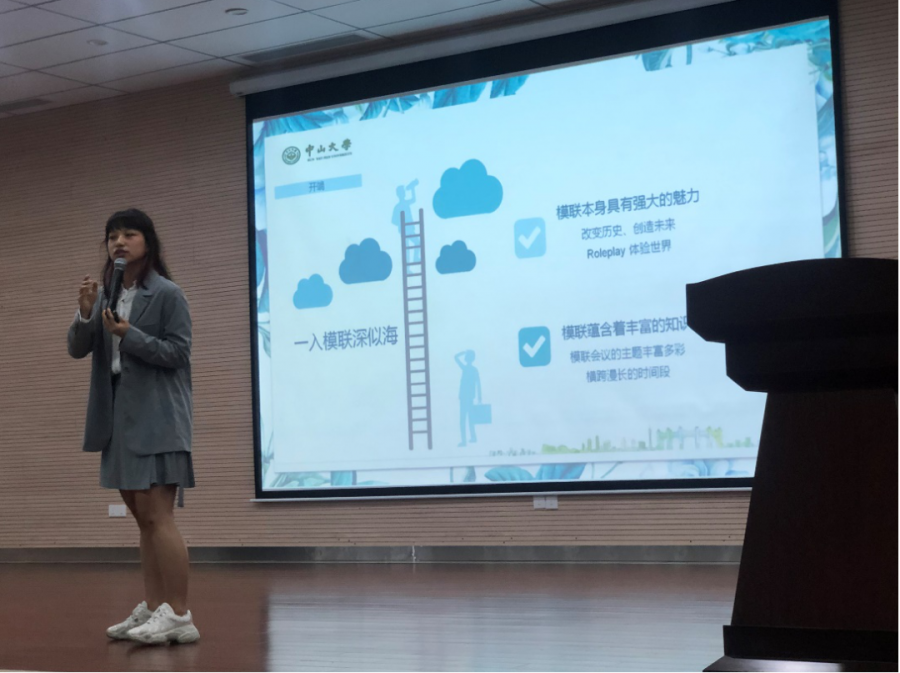 我院国际关系学会的成员也参加了本次“国关知识进校园”活动,为中大附中的学生介绍“模拟联合国”这一具有国关特色的学生活动,向同学们展示了一个波诡云谲的国家间外交的平台,给同学们展示了一种锻炼自己、关怀家国、展望世界的途径。19级黄妙宁同学用一段自己制作的快闪视频,向同学们展示了中国外交史,也展示出中国在全球治理中正在扮演越来越重要的角色。随后,18级周涵同学和19级姚懿真同学从自己的模联经历出发,讲述了自己在模联经历中不断成长的故事,希望同学们关心国际政治,学会突破自己,结交更多志同道合的伙伴以及开拓自己的视野。最后,本科18级的钟可立同学向同学们系统介绍了模拟联合国活动的内容、老太阳集团tcy8722网站模拟联合国大会以及老太阳集团tcy8722网站国际关系学会,希望同学们可以在模联中学到东西、交到朋友、玩得开心。