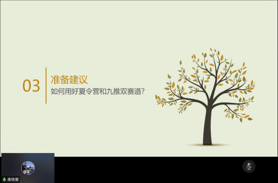 随后,8位2017级本科生分别根据自身情况就国内推免、国内考研和国外升学三个方面进行了升学经验分享,向低年级同学传授经验,答疑解惑。