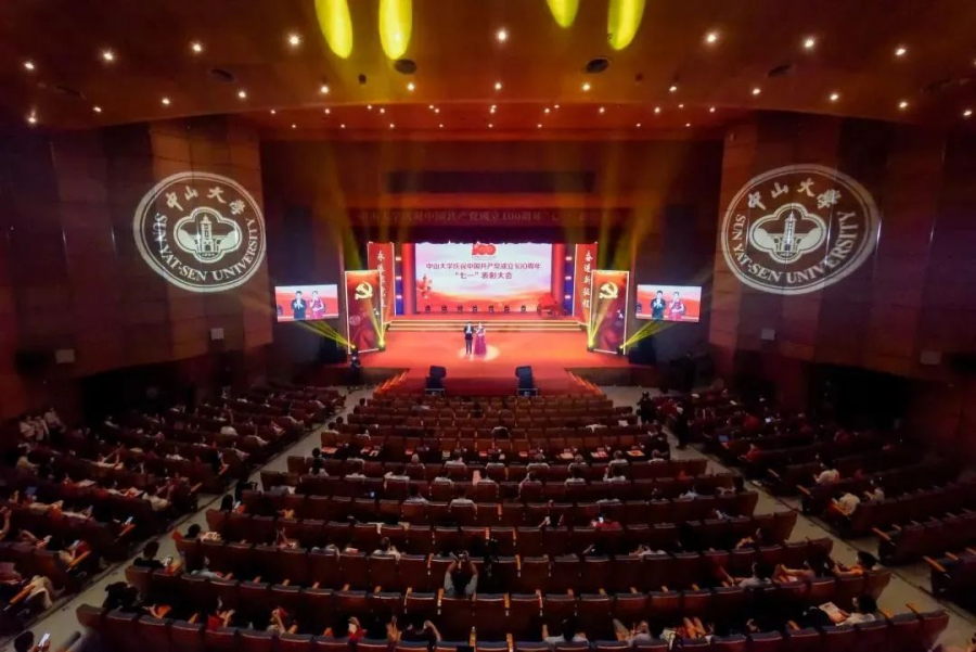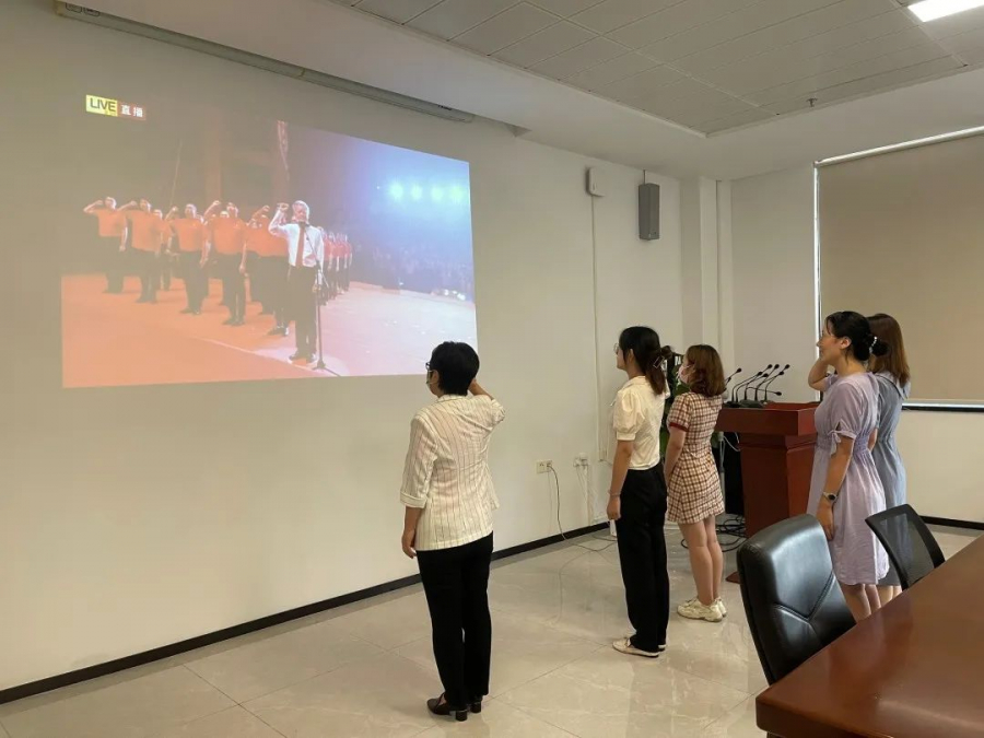 6月30日下午,我校庆祝中国共产党成立100周年“七一”表彰大会在广州校区南校园梁銶琚堂举行。大会以线上线下相结合的方式,通过学校融媒体平台面向三校区五校园全程直播。我院党总支组织师生党员代表在海琴6号B210会议室集中观看学校表彰大会直播。