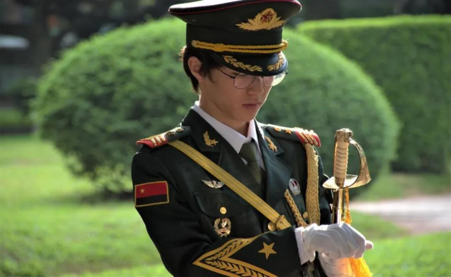 周瑞麒同学作为国旗班领队在带队
