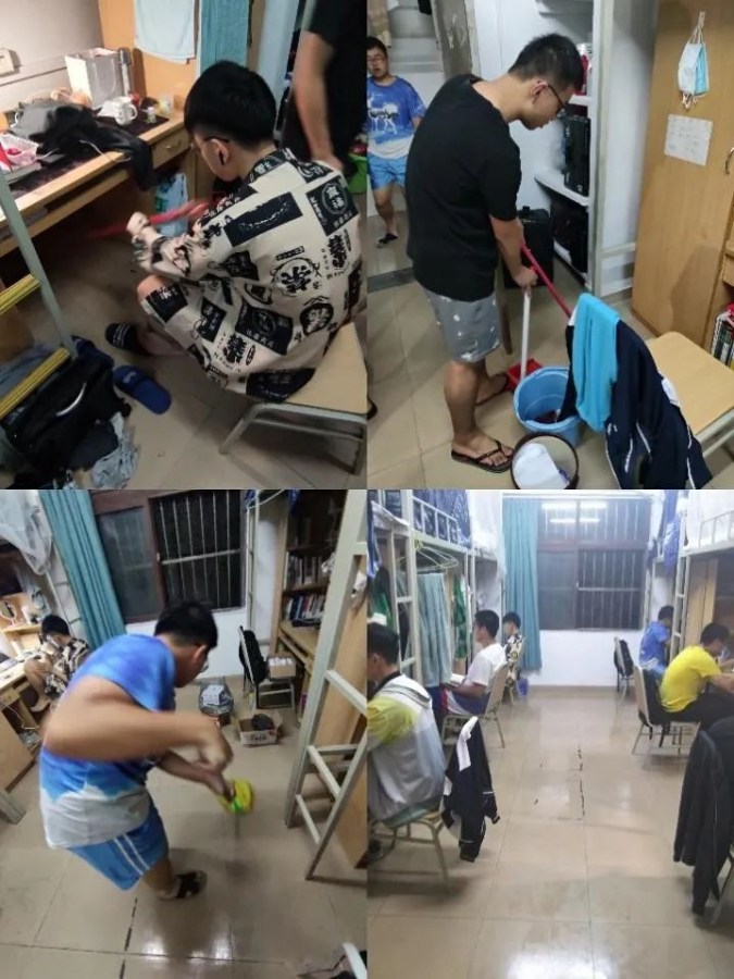 在宿舍内务方面,成员们重视内务工作,实行每日卫生轮替制,宿舍成员都自觉地参与到宿舍卫生工作来,在劳动中共同为集体做贡献。同时,宿舍成员遵纪守法,安全始终放在心头:专用的低功率水壶、细心套封起来的剪刀以及对彼此健康的问候,对安全的重视体现在了一举一动之中。宿舍还经常开展宿舍大扫除与安全检查活动,坚持做到不存卫生死角,不留安全隐患。安全放在心间,落实在行动上,是宿舍的共同准则。