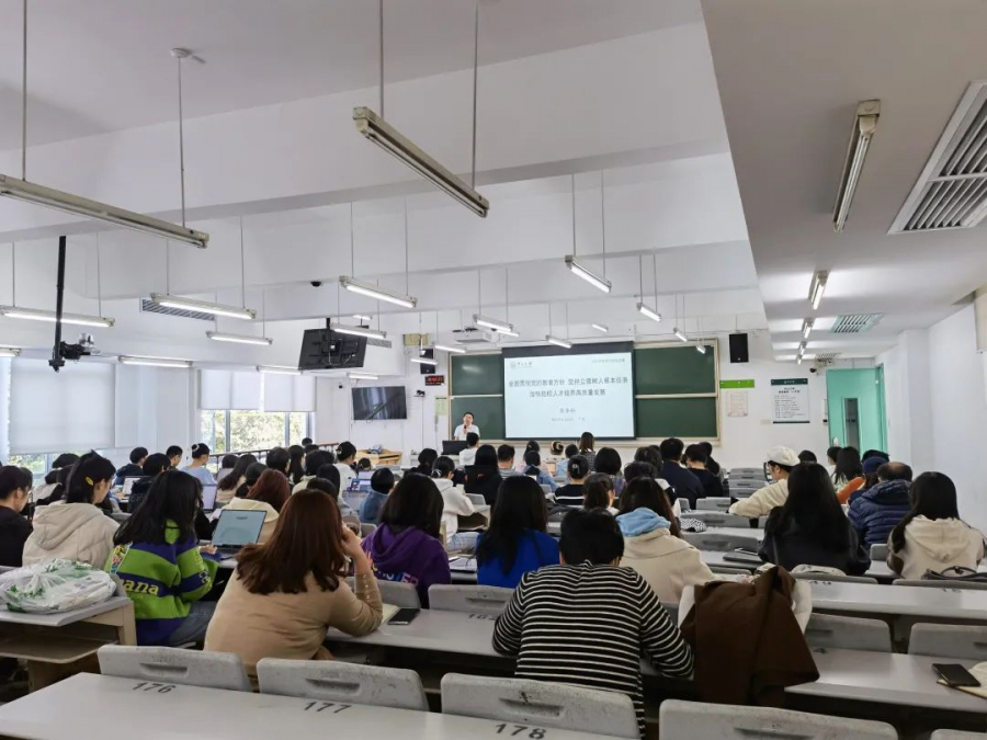 刘济科副校长详细阐述了学校全面贯彻党的教育方针、积极探索具有中大特色人才培养理念的实践和成效。他指出,学校贯彻落实习近平总书记关于教育的重要论述特别是关于高校工作的重要指示精神,加强党对高校的全面领导,始终与党和国家的发展同心同向同步同行,提出了国家、社会、学界“三个首先想到”的办学标准。他谈到,学校把立德树人全面融入办学治校各个方面,构建“德育与智育融合、学科与专业融合、科研与教学融合、本科生培养与研究生培养融合、第二课堂与第一课堂融合”的“五个融合”人才培养体系,不断突出体系的“科学性、完备性、竞争性”,用最优秀的人培养更优秀的人,打造高质量人才“摇篮”。近几年来,通过全体师生共同努力,学校扎根中国大地、与时俱进地建设一流大学和一流学科,基本形成广州、深圳、珠海“三校区五校园统筹发展”的办学新格局。学校学科建设水平快速提升,实现可衡量办学指标“倍增”,人才培养体系更加完善。