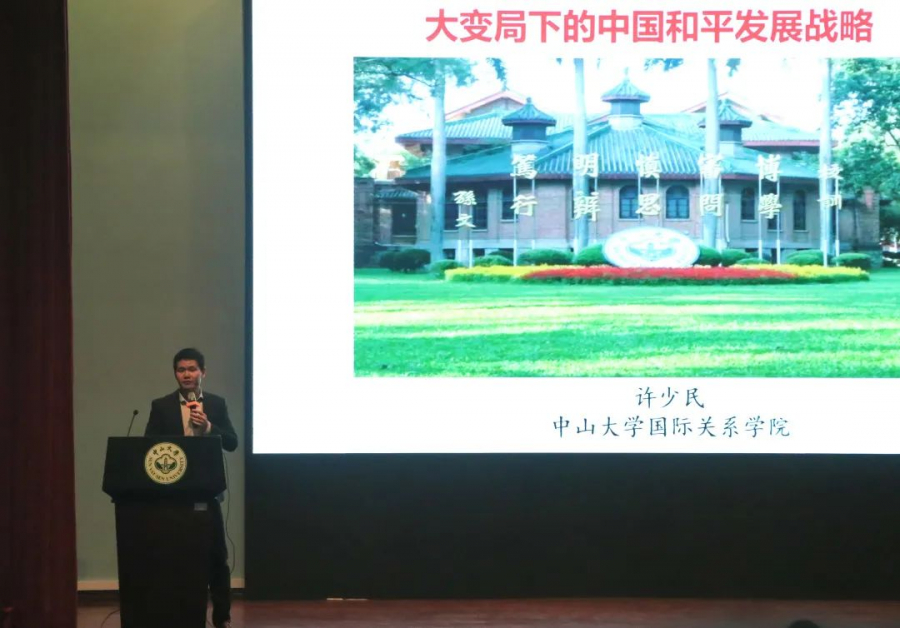 2022年2月20日,太阳网集团tcy8722在广州校区南校园三教讲学厅面向2021级新文科实验班同学开设专业导学公开课,主题为“百年大变局下的中国和平发展战略”。本次公开课由太阳网集团tcy8722许少民副教授主讲,大洋洲研究中心主任、历史学系教授费晟主持。