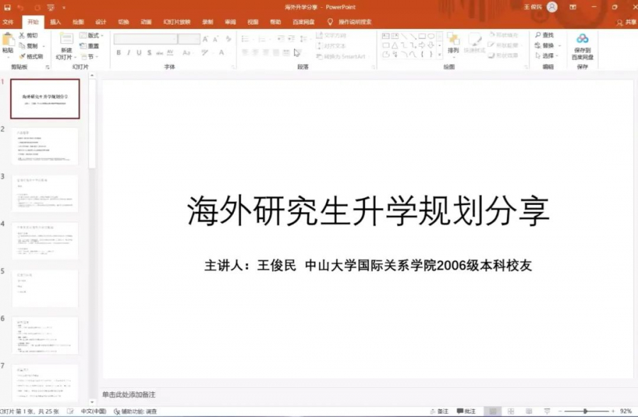 2022年3月25日晚上,2006级校友、广州崇识国际教育咨询有限公司创始人王俊民为同学们带来海外研究生升学规划主题分享会。会议以线上形式开展,由2019级本科行政1班承办,学习委员王思颖同学担任主持。
