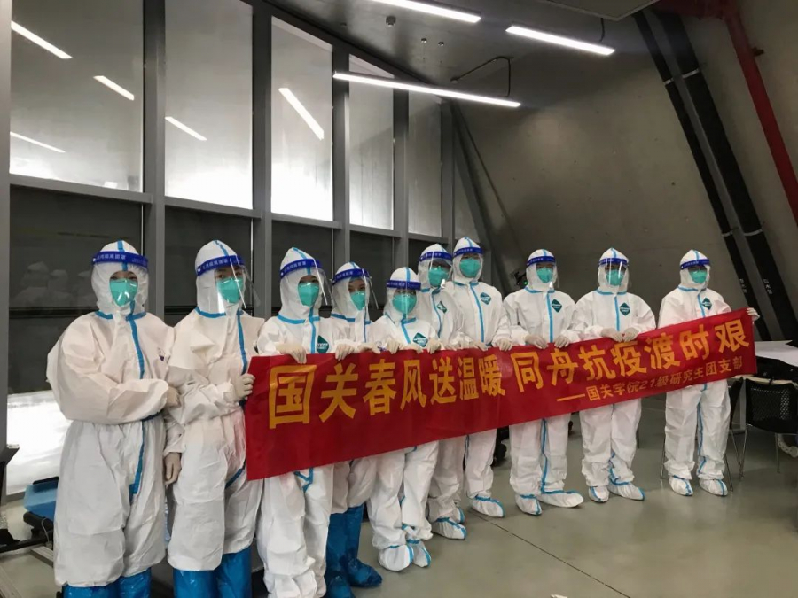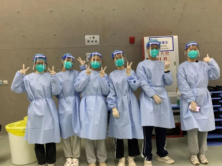 在抗疫克难的攻坚时刻,很荣幸参与“国关春风”志愿活动,协助学校的核酸检测工作。最初的感受可能是新奇,但是当真正投入到工作中,套上厚厚的防护服时,才感受到前线工作人员的不易。同心抗疫,上下一心,相信不久定会再次见到大家口罩下的笑容。