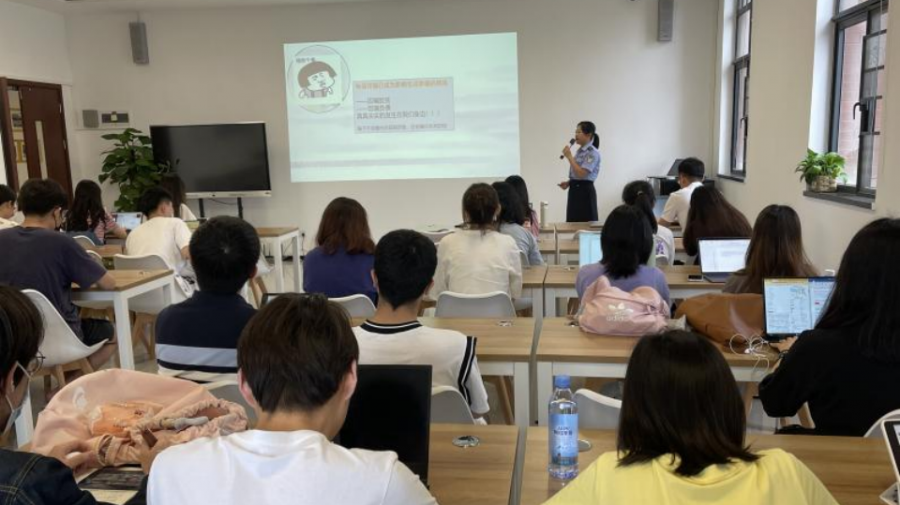 在心理健康教育专题中,周晖老师以一个实验为引子呼吁同学们在日常生活中做到关心他人,幸福自己;通过讲诉自身学生时代的住宿经历,指出宿舍成员之间建立联结、共建宿舍文化的重要性;强调在做好同学们心理健康建设过程中要发挥朋辈力量,希望每位同学通过参加本次培训,都能掌握识别危机的方法,共同织牢织密学生群体中心理自助、助人、互助的安全健康网。
