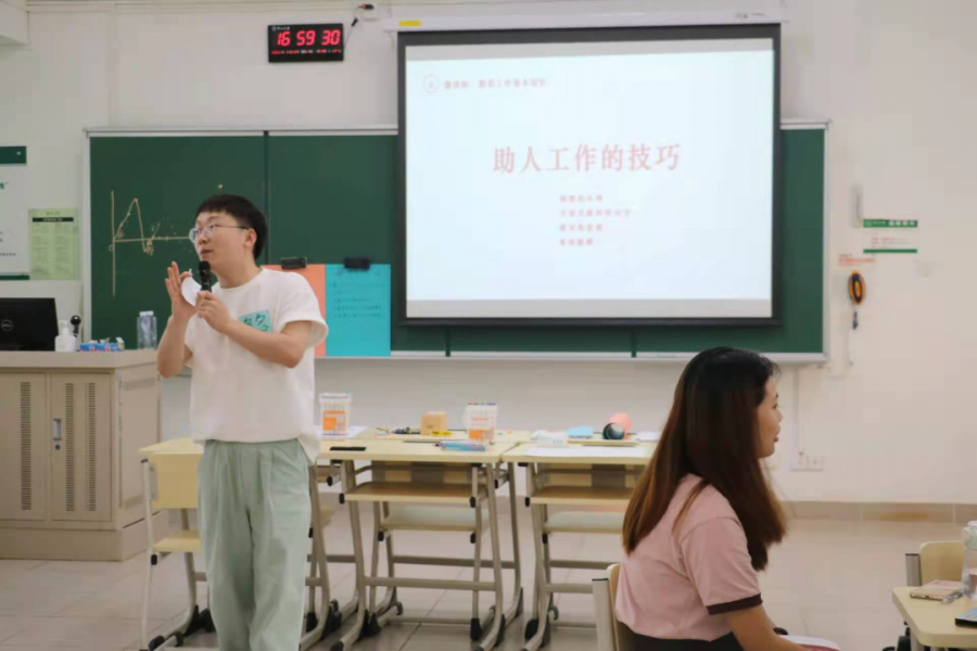 本次培训在团队辅导的基础上,还讲解了心理健康基本知识、助人技巧及心理危机的朋辈支持和团队带领技能专项讲解。在朋辈助人的工作中,同学们学习了识别、支持陪伴与转介的技巧,转介时应注意保密及尊重自主性,而危机情况下需要突破保密;在团体带领技巧方面,同学们掌握了团体引入、利用热身项目和核心项目建构团队体验,以及在团体内进行总结分享的方法。团队领导者和协同领导者在带领团队的过程中各有分工,团队领导者在领导项目的过程中应该掌握一定的引领和打断技巧,需要通过写逐字稿等方式熟悉掌握项目规则和流程并且注意着装礼仪。