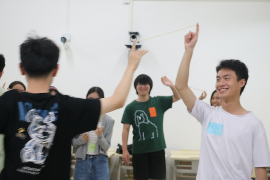 在培训中,同学们通过多元排队、肢体语言交流和循环沟通等方式,围绕兴趣爱好和家乡等话题,探索团队沟通方式,相互了解、相互靠近。随后,同学们根据对“朋辈”的理解进行一笔作画,并共同商讨制定了《我们可以!》团队契约。别具特色的沟通方式、表达心灵的抽象画作、真诚互促的团队契约,引导同学们感知团队初体验,联结对方、彼此作用,凝聚为具有感染力和带动力的团体。