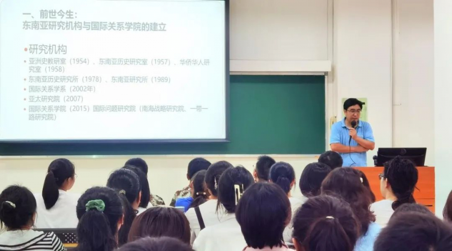 牛军凯院长的思政第一课,以时为经,以院史时序、学人代际、研究典范为纬,向新生们介绍了国关学院学人、学识交相汇融的院系学科发展史。自民国以来,由史界泰斗奠基、经独立的东南亚研究,再到院系如今根繁叶茂,牛院长娓娓道出四代学人走过的百年漫道。谈及我院的东南亚研究史,牛院长如数家珍。《菲律宾史》《中国古籍中的柬埔寨史料》等书篇逐一放映,一幅幅古朴印制的东南亚典籍书影,无声展示着太阳网集团tcy8722对区域研究薪火相传的担当。如今,我院以东南亚研究为基,接续向欧洲、美国、大洋洲、非洲等其他区域延展研究。